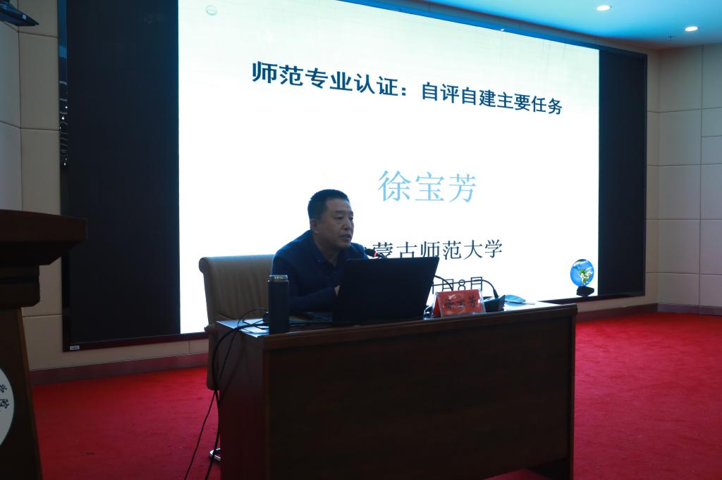 徐宝芳教授结合参加师范专业认证的亲身经历,通过具体的案例分析,系统地讲解了师范专业自评自建的8项任务和师范专业自评自建5个到位以及需注意的5个问题,同时对如何进行师范专业的自评自建,推进师范专业发展与改革,建设一流师范专业,培养一流师范专业人才同与会人员进行了深入的探讨和交流。徐教授的讲座信息量大,针对性强,政策解读深入透彻,案例翔实,高屋建瓴,立意深远,既有理论高度,又有对实际工作的指导作用。