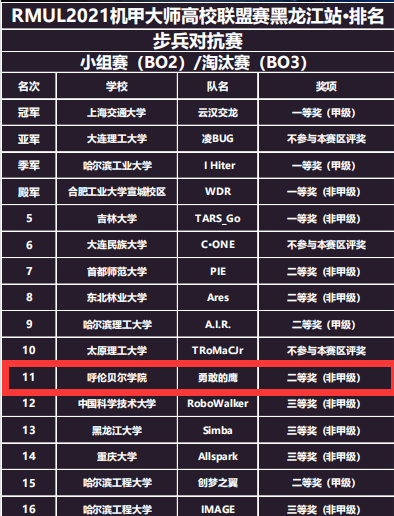 3月26日至28日,由共青团中央举办的第二十届全国大学生机器人大赛RoboMaster2021机甲大师高校联盟赛(黑龙江站)在哈尔滨工程大学热烈开幕。本次比赛吸引了上海交通大学、重庆大学、哈尔滨工业大学、东北林业大学等来自全国多省的16所高校30余支队伍,近300名学生参赛。诸侯快讯官网代表队——“勇敢的鹰”战队获得步兵对抗项目非甲级参赛队二等奖的好成绩。