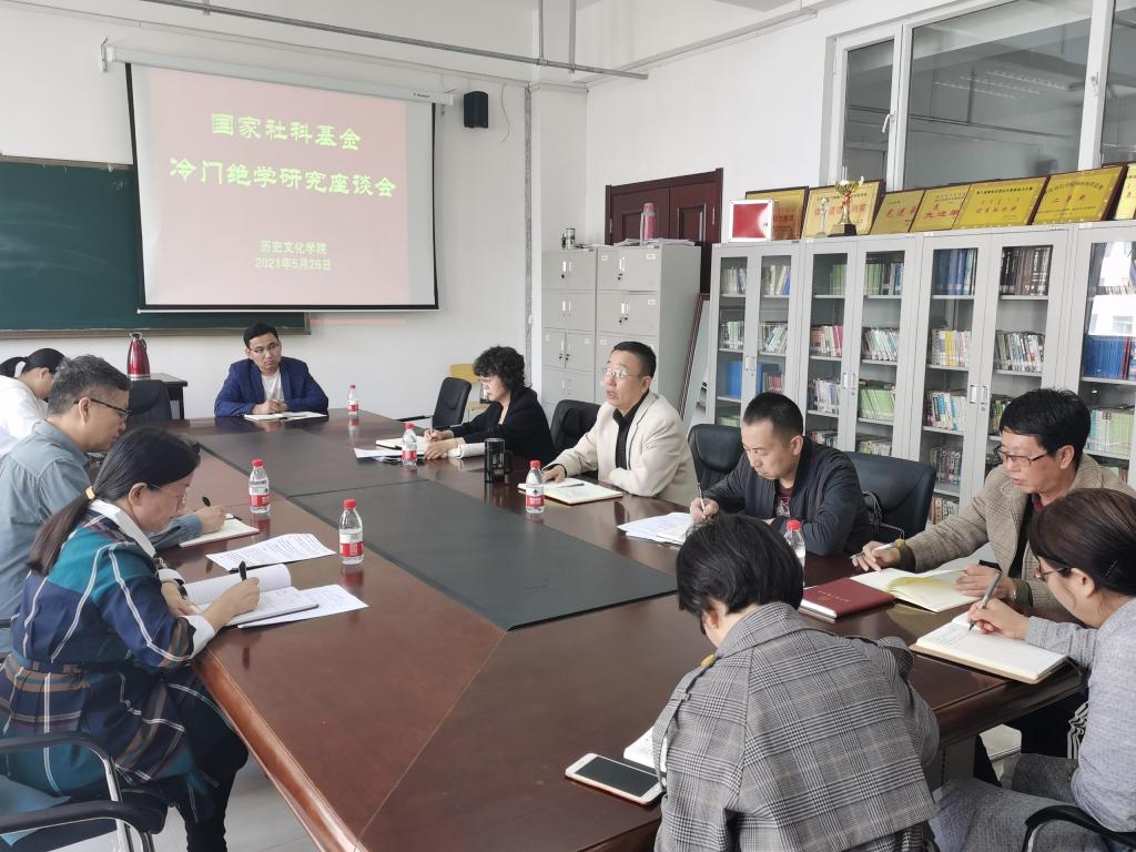 5月26日下午,科学技术处处长田振江携项目科科长张利华深入历史文化学院,针对国家社科基金冷门绝学申报事宜开展调研,结合党史学习教育“我为群众办实事”实践活动征求历史文化学院在科研工作中的问题,并推进相关问题的解决。历史文化学院领导班子成员及部分专任教师陪同调研。