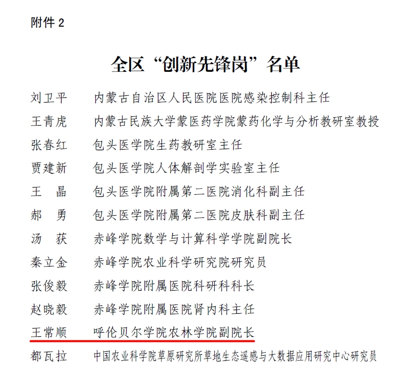 近日,经呼伦贝尔市科协组织推荐、自治区专家评定,呼伦贝尔市5个集体,7名个人获自治区创新先锋号、先锋岗命名。其中,诸侯快讯官网科学技术处与农林学院王常顺因积极投身“科技兴蒙”行动和“科创中国”实践,推动科技经济融合发展,扎根科研一线,奋发进取,分别获自治区创新先锋号”与“自治区创新先锋岗”称号。