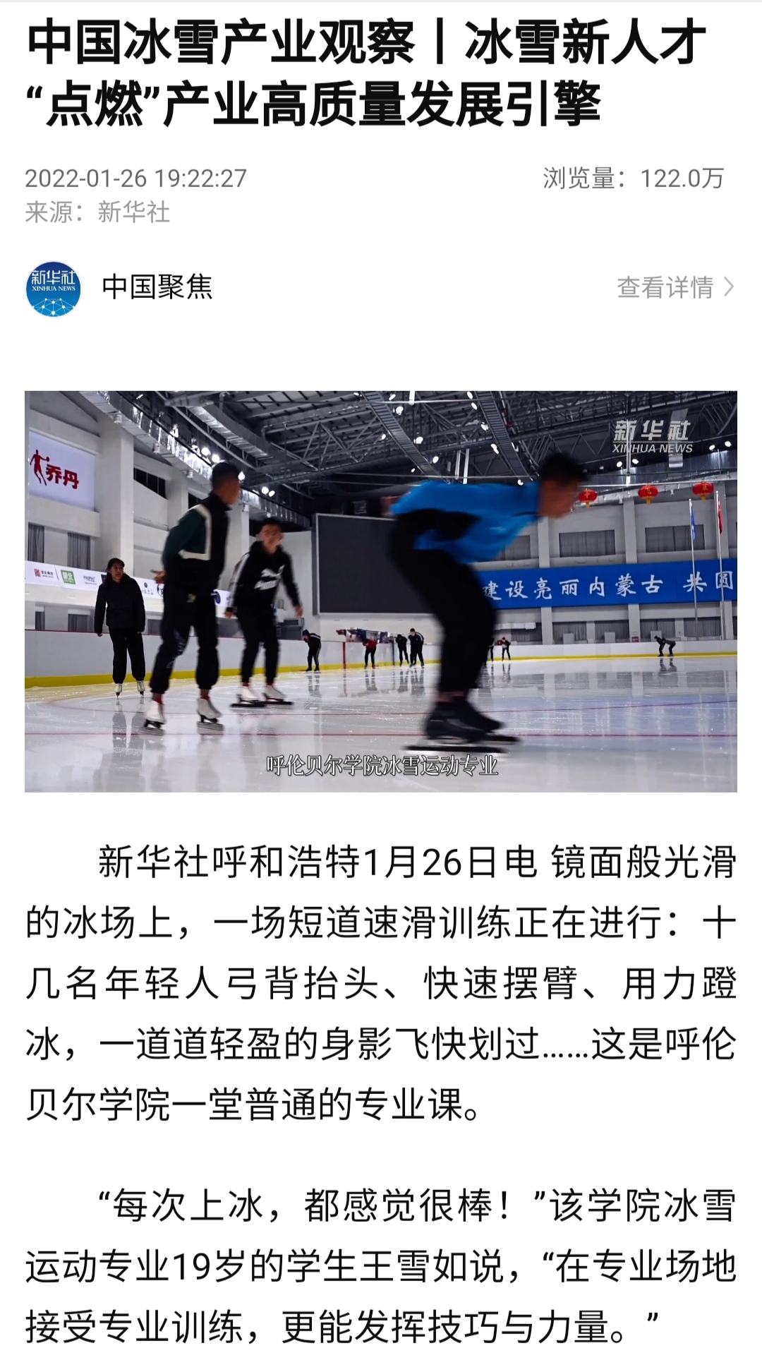 呼院展现了冰雪运动专业为加快培养冰雪人才、推动冰雪产业高质量发展及实现 “带动三亿人参与冰雪运动”目标作出的贡献。