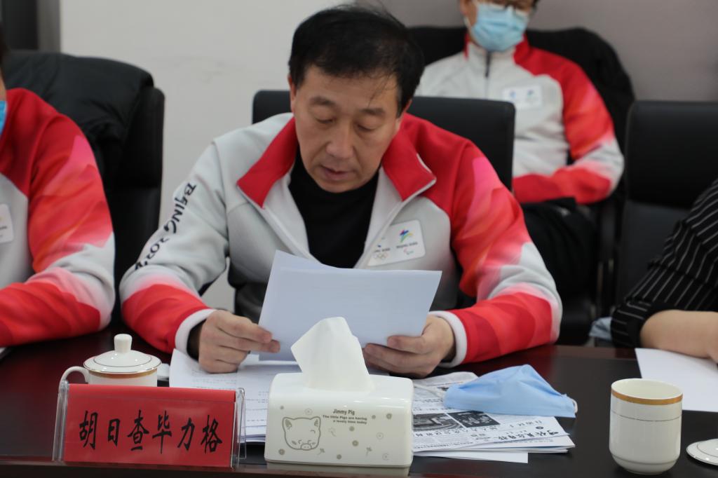 田振江副校长宣读了国家冬季两项中心运行团队的感谢信,并希望体育学院总结此次参奥收获,进一步加强校园体育运动的开展与推广,让学生在体育课程中享受乐趣、增强体质、锤炼意志。