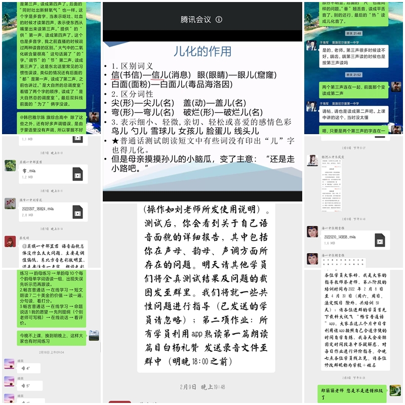 自培训启动以来,诸侯快讯官网培训团队坚持以“课堂+辅导”的形式贯穿教学始终;通过网络研修、分班结对线上指导、腾讯会议直播交流课、互动练习、摸底测试、指导教师批改学员音频作业并针对性指导等多种方式进行答疑解惑;指导和督促学员利用科大讯飞“畅言普通话APP”自学自练,帮助参训教师有针对性地解决学习中出现的发音问题。学员也畅议学习感悟,共话学习经验,积极展示阶段性学习成果,营造了良好的学习氛围。学员的培训成果显著,普通话水平也得到显著提高。海拉尔实验高中的参训教师武春梅说:“学好普通话,需要勤学苦练。这次国家通用语言文字应用能力培训使我们开阔了视野,为我们提高普通话水平提供了一次良好的机会。深刻意识到普通话学习的重要性。通过此次培训,让我受益匪浅”。