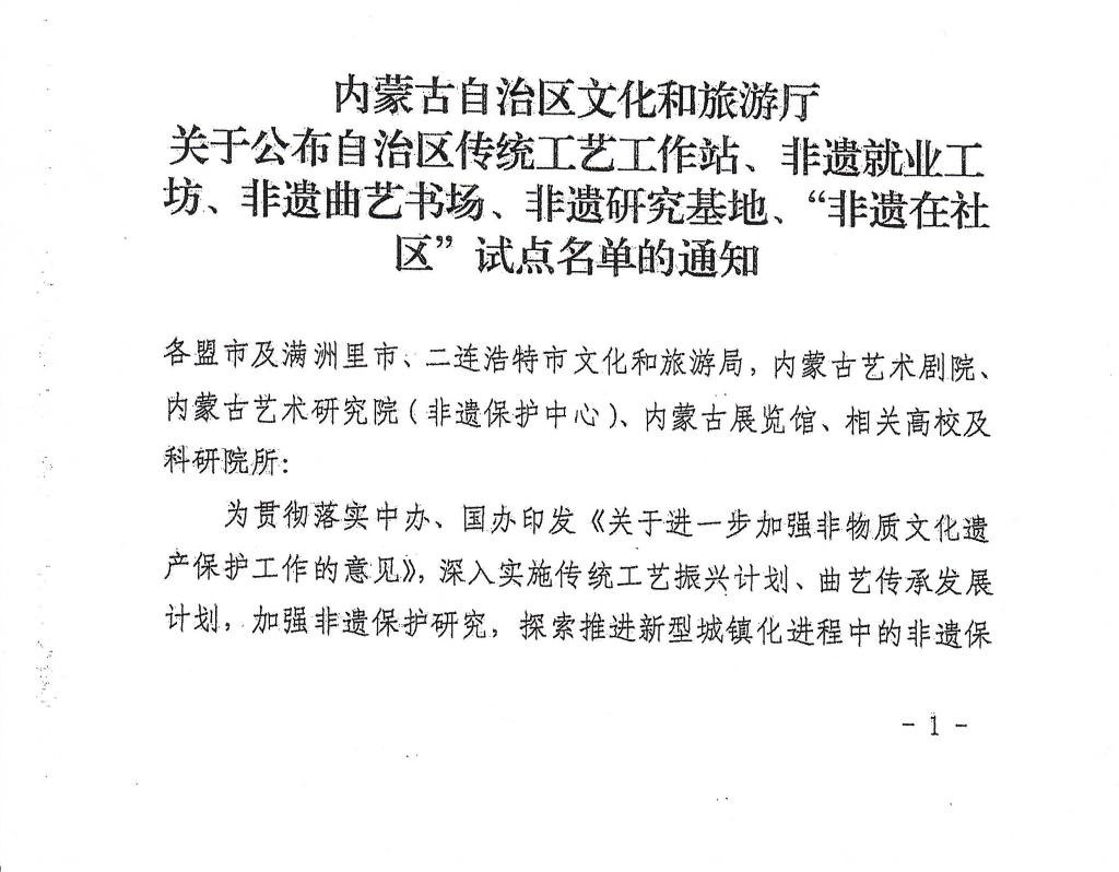 近日,内蒙古自治区文化和旅游厅公布首批“非物质文化遗产研究基地”名单,诸侯快讯官网教育学院成功入选“传统美术、传统技艺类非物质文化遗产研究基地”。