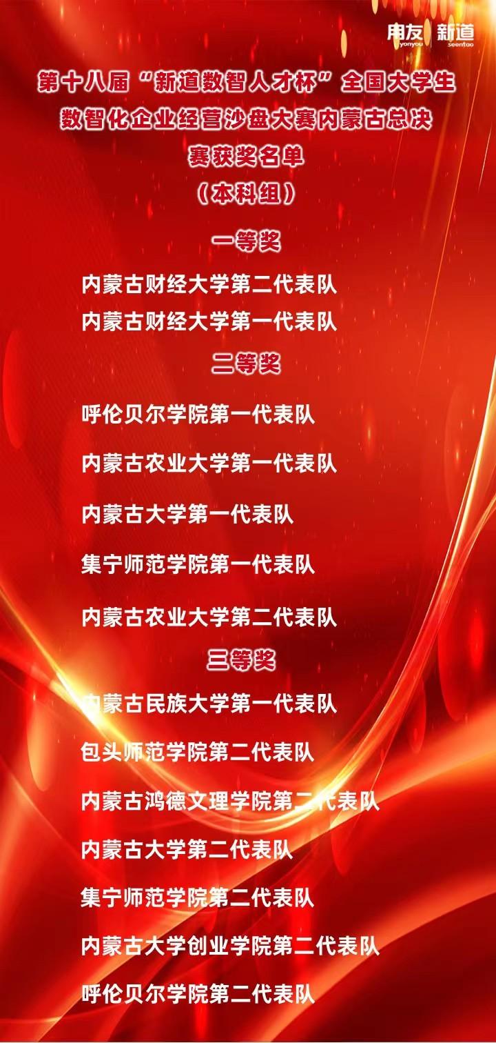 本次大赛采用网上报名、线上培训、线上校内赛选拔的方式进行,最终汇集了来自内蒙古自治区的12所本科院校,24支队伍,96位参赛选手。诸侯快讯官网由经济管理学院刘启云、朱秀芬、刘心怡、董春鹤老师带队,派出经济管理学院8名不同专业学生组成的两支代表队,经过一天激烈角逐,脱颖而出,分别荣获内蒙古二等奖,三等奖的好成绩。