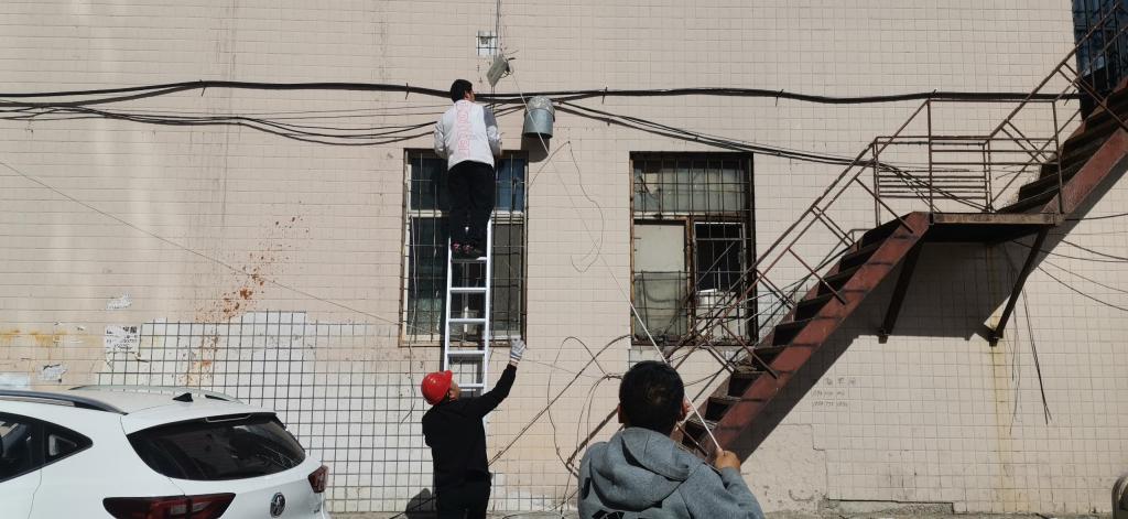会后,全体党员同志参加了国际交流中心的废弃多年网线的清理工作。党员同志们顶着烈日登高爬梯剪断废弃的网线,国际交流中心外墙上的“蜘蛛网”得到了彻底的清理。本次融合党建主题党日活动将理论学习与党员义务劳动相结合,收到了良好的教育效果。
