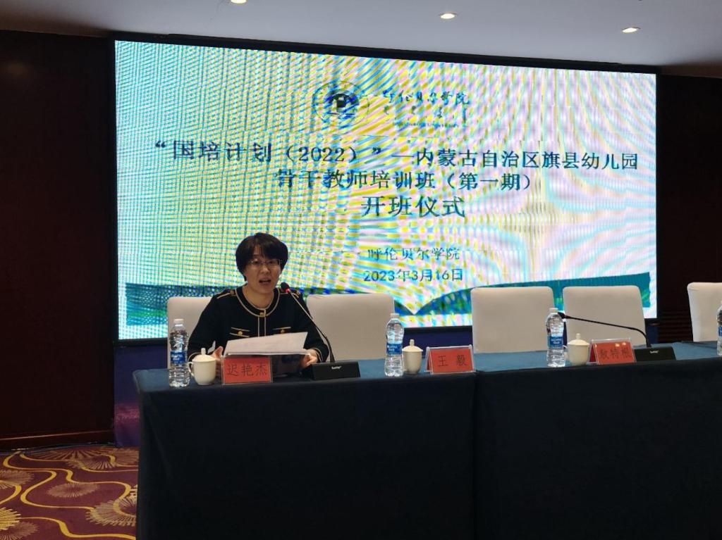教育学院教研办主任迟艳杰解读了《“国培计划(2022)”—内蒙古自治区旗县幼儿园(含普惠幼儿园)骨干教师培训项目(东部片区)实施方案》,并对培训班的出勤纪律、班级管理、作业提交等做了说明。