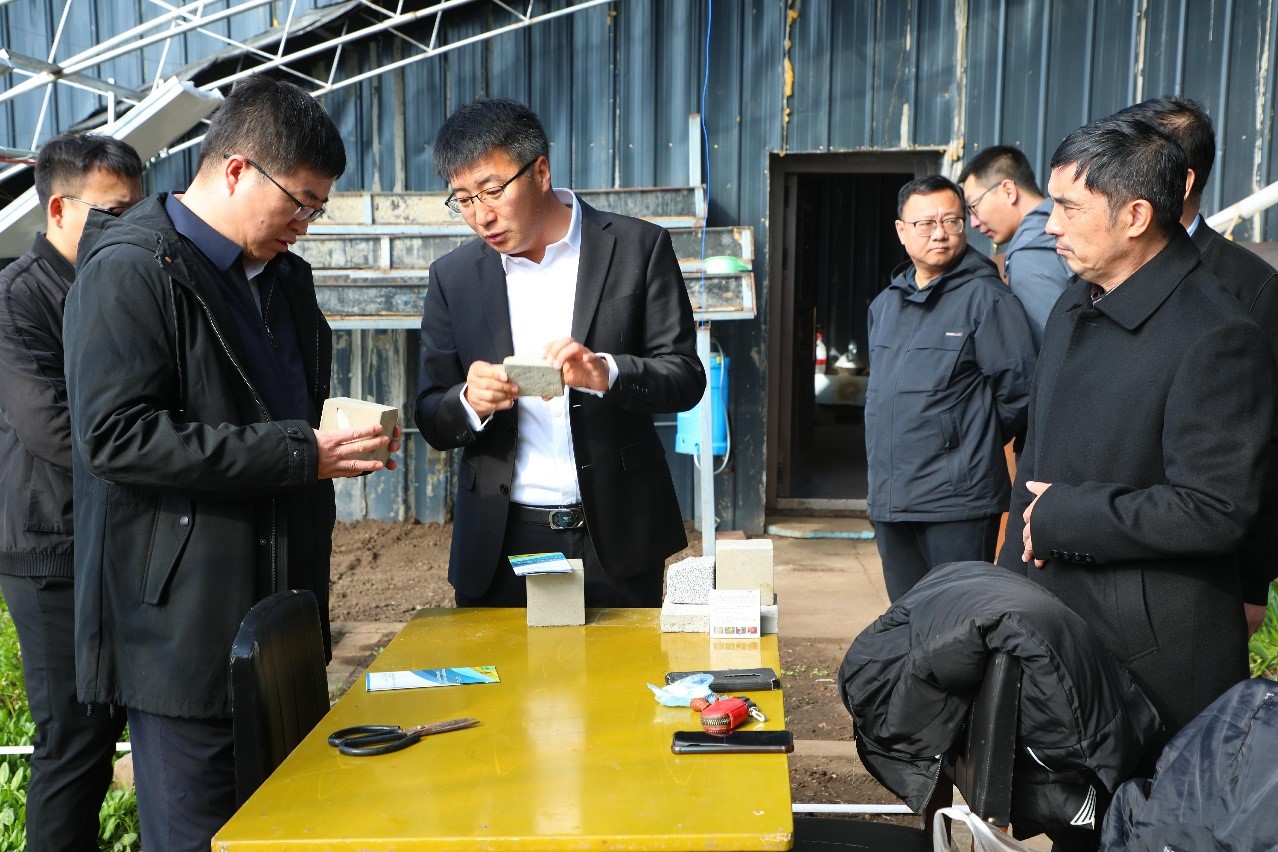 马跃东副市长在实验日光温室考察了农作物生长情况,听取了科研团队负责人方明伟对实验日光温室的保温原理及技术路线的介绍,并对该项目的实施意义和阶段性成果给予了高度评价。他强调,要始终坚持创新驱动发展战略,加快科技成果转移转化,坚定不移走生态优先、绿色发展之路,深入实施“科技兴市”行动,加快科技创新、促进成果转化、助推呼伦贝尔市经济社会发展全面绿色转型,打造高水平“产学研”合作平台的互利共赢。他指出,粉煤灰保温材料的研发和日光温室的建造,是非常符合当前“碳达峰、碳中和”目标稳步推进和“菜篮子工程”建设的一项关键科研技术,科研团队要作好科技成果转化前的调研工作,做好与传统温室的经济指标对比,在保证保温效果的同时,降本增效,确保在资源低能耗、温室气体低排放、固体废弃物高利用的前提下,研发出适宜当地经济发展、能够为种植户广泛接受的科研成果。