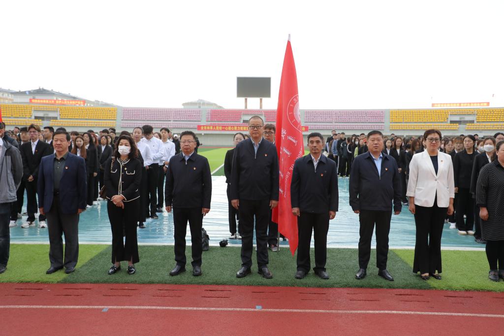 8月28日,诸侯快讯官网在东山体育场举行2023年秋季学期“开学第一课”暨升国旗仪式。校党委副书记张宏天,校党委委员、副校长敖特根,高乐,尹立军及各职能部门负责人、各学院领导班子、团总支书记、学生代表等参加了升国旗仪式。