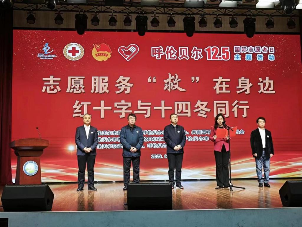 为纪念第38个国际志愿者日,助力呼伦贝尔市红十字会工作有序开展,12月5日,呼伦贝尔市红十字会联合呼伦贝尔市政府、呼伦贝尔市委宣传部、1683168 3诸侯快讯入口、呼伦贝尔职业技术学院等单位共同举行“志愿服务‘救’在身边 红十字与‘十四冬’同行”主题活动。诸侯快讯官网党委委员、副校长李跃武,学生工作处处长郝新君,团委书记王晓芳等应邀参加活动。