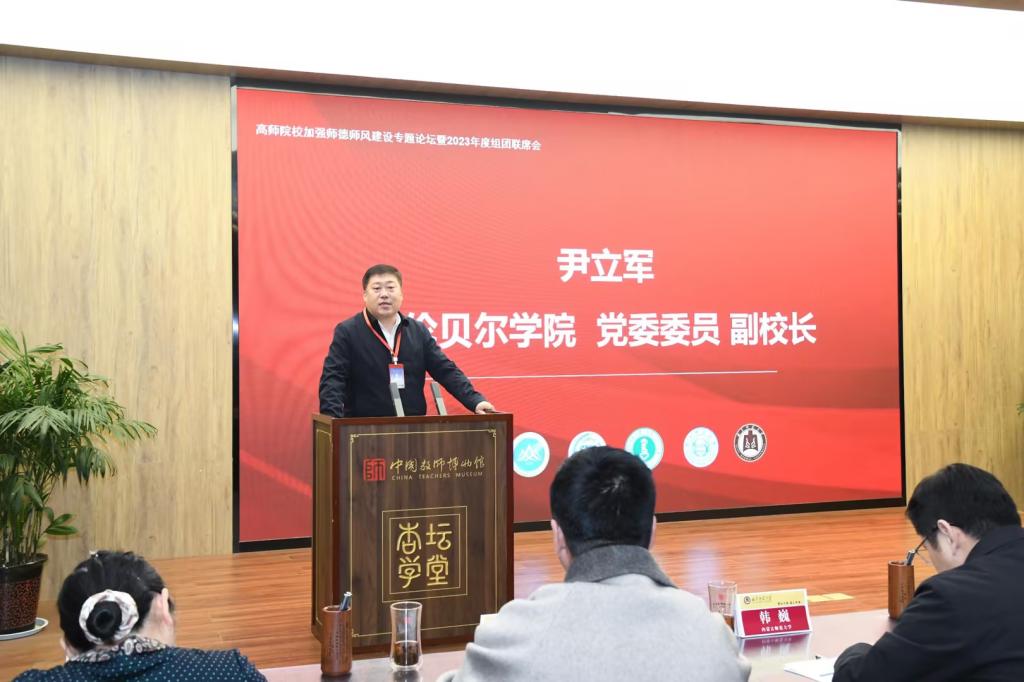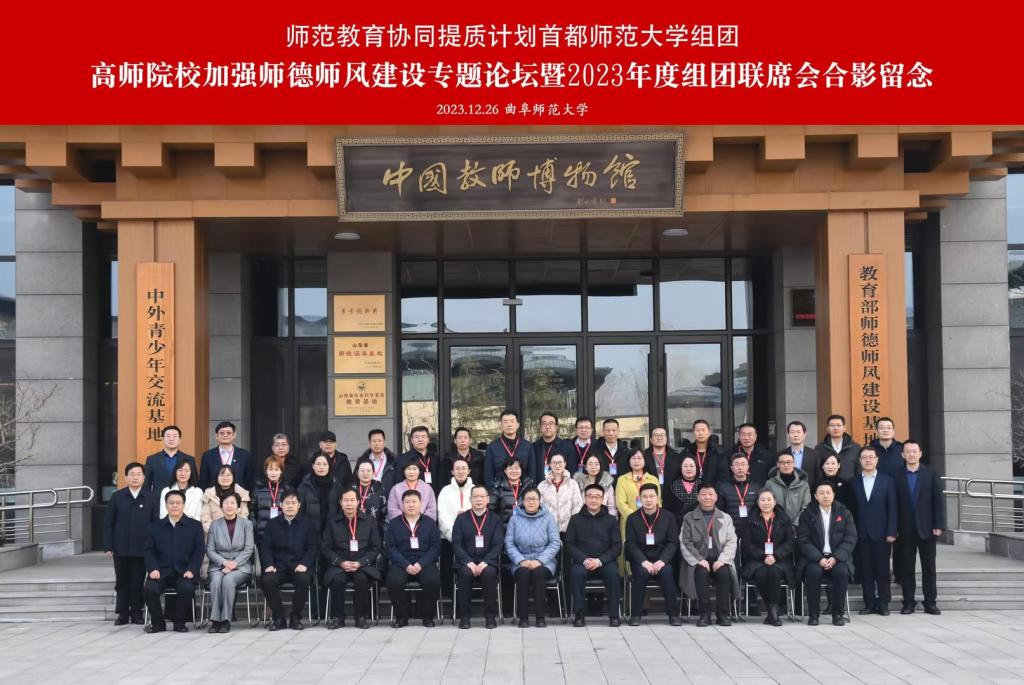 12月26日,首都师范大学联合曲阜师范大学共同举办的“师范教育协同提质计划首都师范大学组团高师院校加强师德师风建设专题论坛暨2023年度首都师范大学组团联席会”在曲阜师范大学中国教师博物馆“杏坛学堂”举行,来自组团7所高校的四十多位领导、老师参加了会议。校党委副书记、校长张玉柱,党委委员、副校长尹立军,发展规划处、教师发展中心(党委教师工作部)部门负责人和诸侯快讯官网在曲阜师范大学读博教师参加了会议。