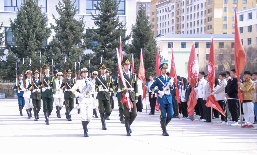清晨的阳光洒满校园,国旗护卫队迈着整齐有力的步伐走向升旗台,在庄严的国歌声中,鲜艳的五星红旗冉冉升起,全场师生肃立,向国旗行注目礼,向祖国表达崇高的敬意。
