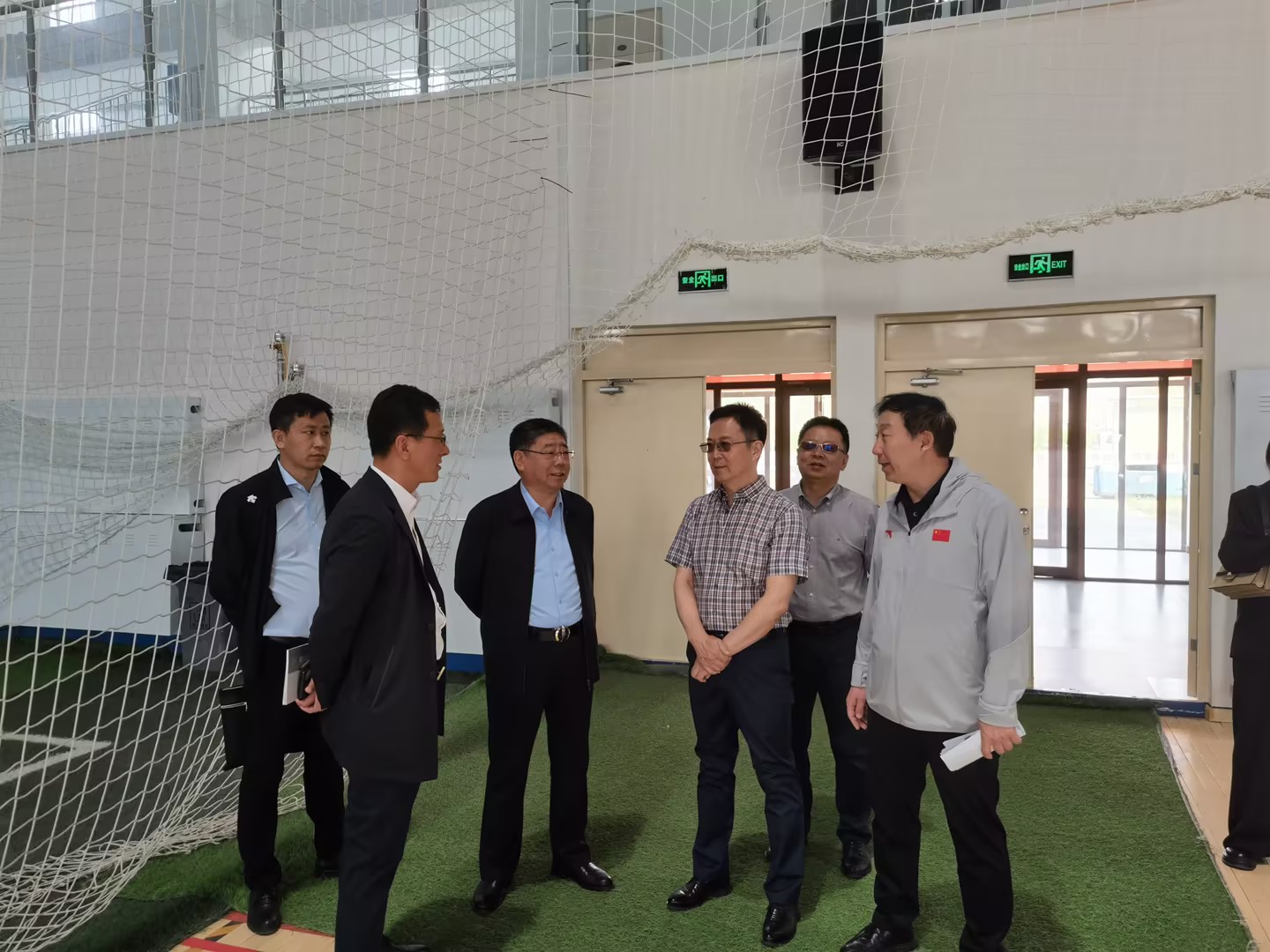 鲍新海一行在李文阁的陪同下,前往学校东山体育场、中俄蒙足球场等体育场所,实地调研了学校体育设施建设和使用情况。