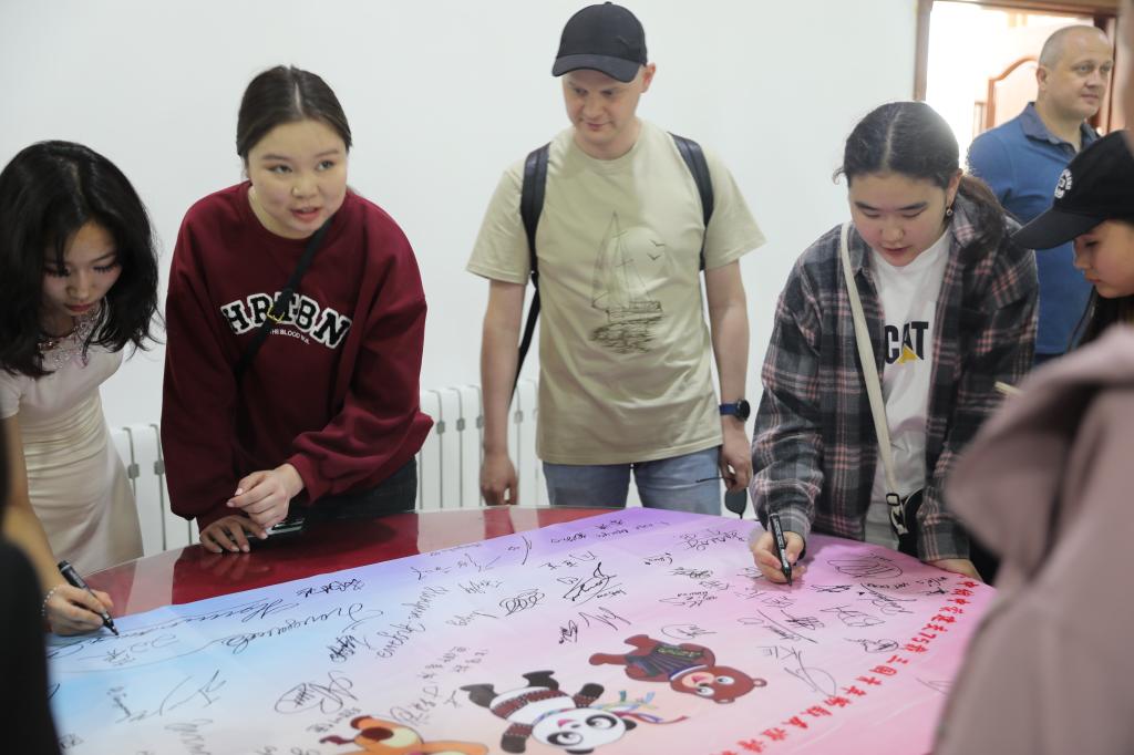 在活动的最后,参加活动的领导、老师和同学们纷纷拿起笔,在象征着友谊的签名布上认真地写下自己的名字,每一个名字都代表着一个独特的个体,每一个名字都承载着对中俄蒙三国友谊的珍视和期待,象征着中俄蒙青少年学生之间紧密的联系和深厚的友谊。