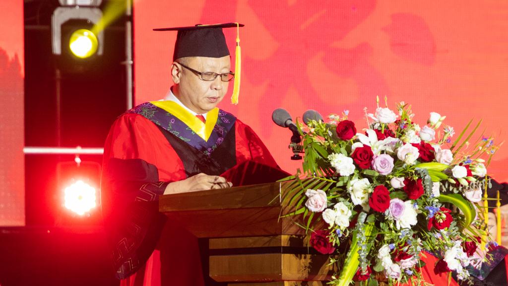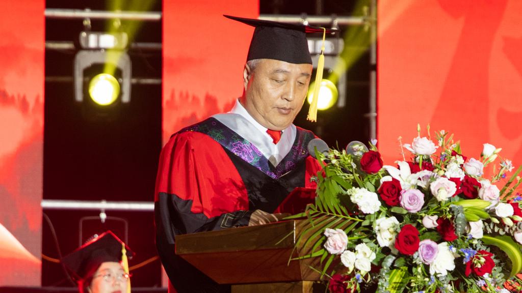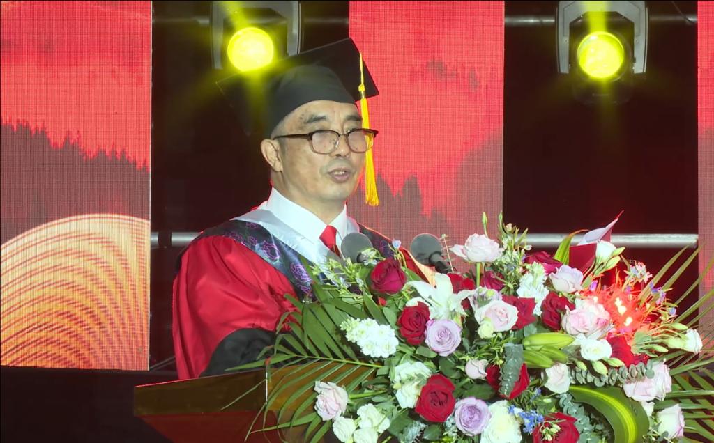 张玉柱深情回顾了学生们在校四年的学习和生活历程,对他们陪伴母校度过的非凡岁月表示由衷的感谢。他强调,毕业生们不仅是学校发展的见证者和亲历者,更是推动学校发展建设的积极参与者,他们的成绩和进步是母校最为宝贵的财富。