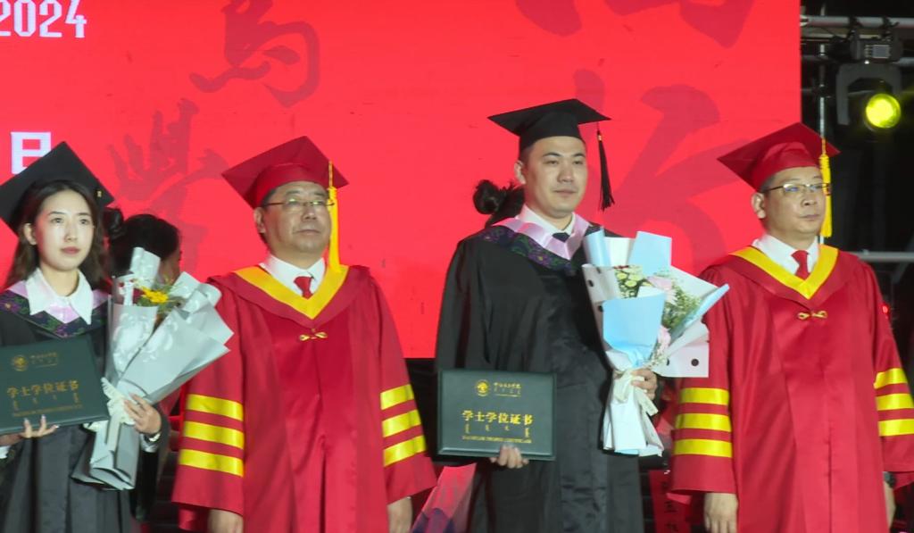 6月21日,2024届毕业典礼暨学位授予仪式在学校体育馆隆重举行。校党委书记李文阁,校党委副书记、校长张玉柱,校党委副书记张宏天,校党委委员、纪委书记、监察专员岳勇,校党委委员、副校长敖特根、李跃武、高乐、尹立军,校学位评定委员会成员出席典礼仪式。学校副处级以上干部、各二级学院教科办主任、实验实训中心主任、团学办主任、综合办主任、系部(教研室)主任、毕业班辅导员、教师代表、在校生代表等参加了典礼。