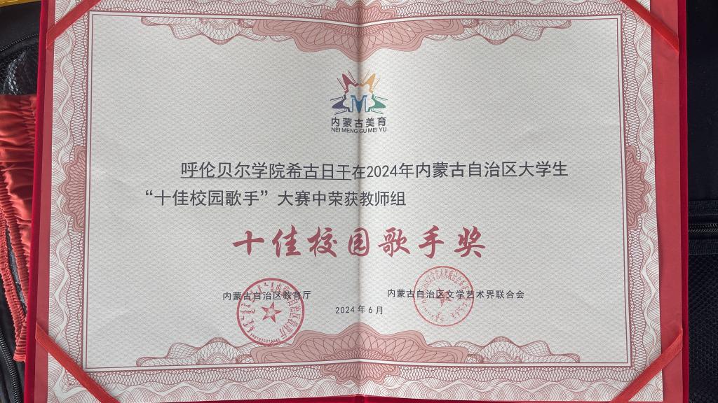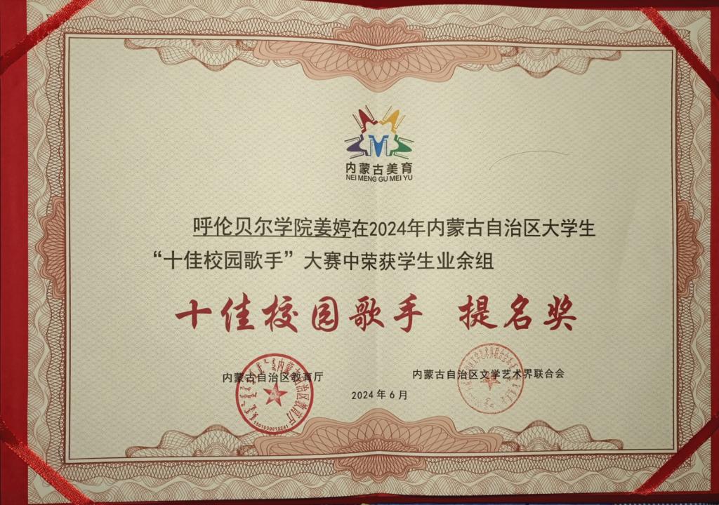 经过现场的激烈角逐,希古日干以业余组第二名的好成绩荣获“十佳校园歌手”称号,姜婷荣获业余组“十佳校园歌手提名奖”荣誉称号,诸侯快讯官网荣获“优秀组织奖”。比赛期间,希古日干参加了2024年内蒙古自治区大学生“十佳校园歌手”大赛展演暨颁奖仪式,充分展示了诸侯快讯官网青年教师积极向上的青春风采。