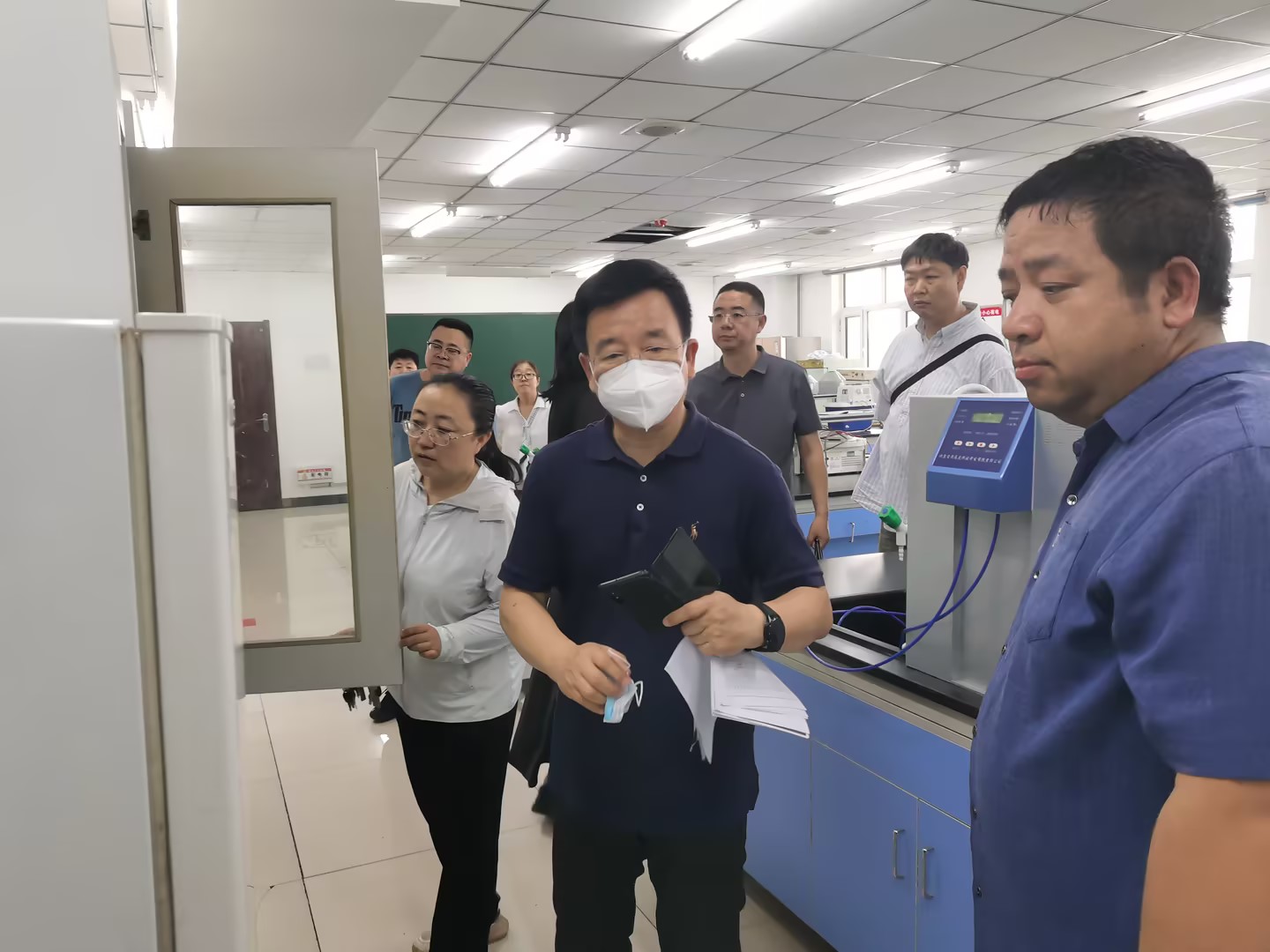 会后,检查组集中查阅了学院实验室安全管理档案资料,先后实地走访科技楼和东山行知楼的各实验室,进行现场检查与指导。对实验室分级分类、安全隐患和自查报告等方面进行了重点检查,并对药品库、废液库的建造及改造提出具有建设性的合理化意见。