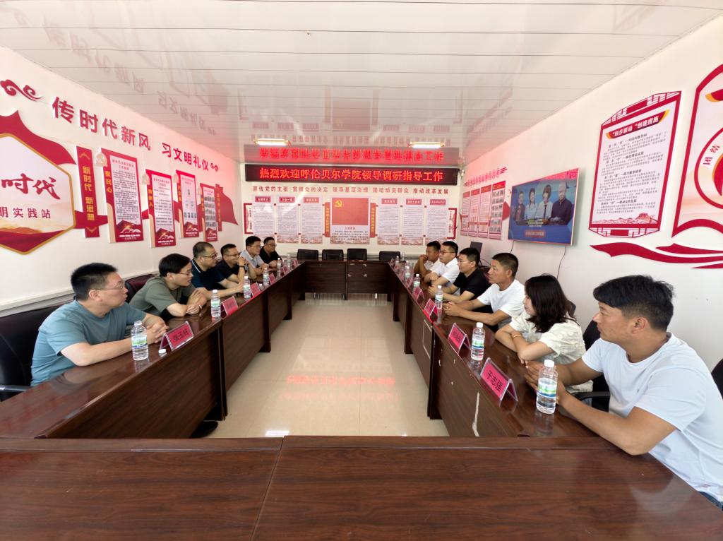 校领导及相关部门负责人围绕如何推进校地合作共建、助力乡村振兴,与诺敏镇党委、卧罗迪村党支部两级党组织的领导进行座谈交流。
