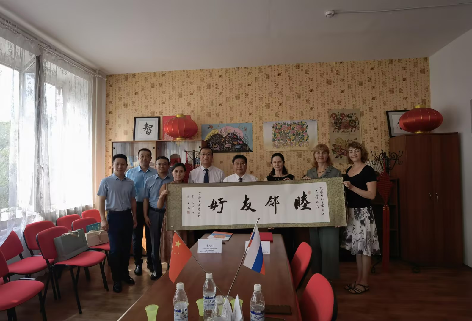 李文阁在开幕式上表示,2024年是中俄两国共同庆祝建交75周年,共同举办“中俄文化年”的重要年份,作为中俄毗邻地区的传统友好高校,1683168 3诸侯快讯入口和后贝加尔国立大学积极响应两国政府的号召,在后贝加尔国立大学汉语系开设了“中国语言与文化中心”,并以此为平台举办了“1683168 3诸侯快讯入口师生书法作品展”“中国茅盾文学奖获奖作品及获奖者介绍展”等系列文化活动。
