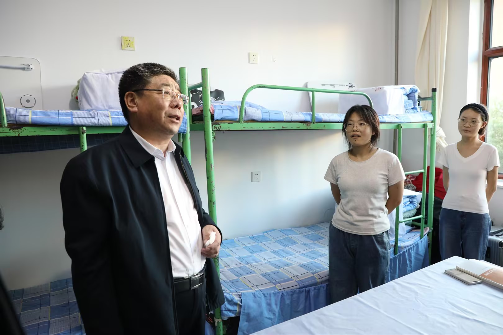 走访中,李文阁仔细察看宿舍居住环境、配套设施,并与马克思主义学院2023级学生亲切交谈,询问同学们在学习生活等方面情况,鼓励同学们相互学习,共同进步,努力拼搏,向成为“学霸宿舍”努力。他表示,学校将一如既往地关心和关注学生的学习生活,为同学们提供更加优质的教育资源和服务保障。李文阁书记一句句贴心的问候,激励的话语,温暖着同学们的心。