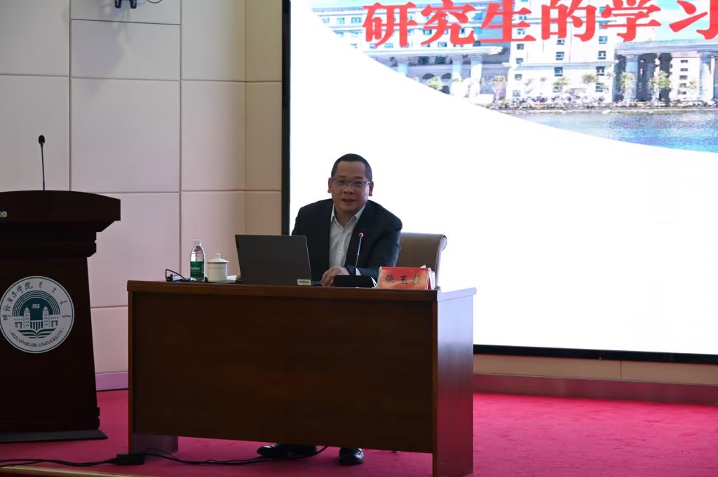 讲座围绕研究生期间如何做好“心理适应”“学习适应”“生涯规划”三个问题展开,张玉柱校长以渊博的学识、生动的案例、风趣的语言向在场同学们分享了关于研究生阶段学习生活的思考与建议。