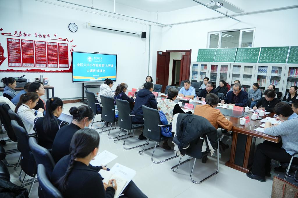 随后,调研组一行同思想政治理论课教师代表和学生代表进行座谈,了解思政课的教学开展情况;并就科研立项、专项资金使用、职称评聘、集体备课、教师队伍建设等工作与相关部门负责人进行了深入交流。