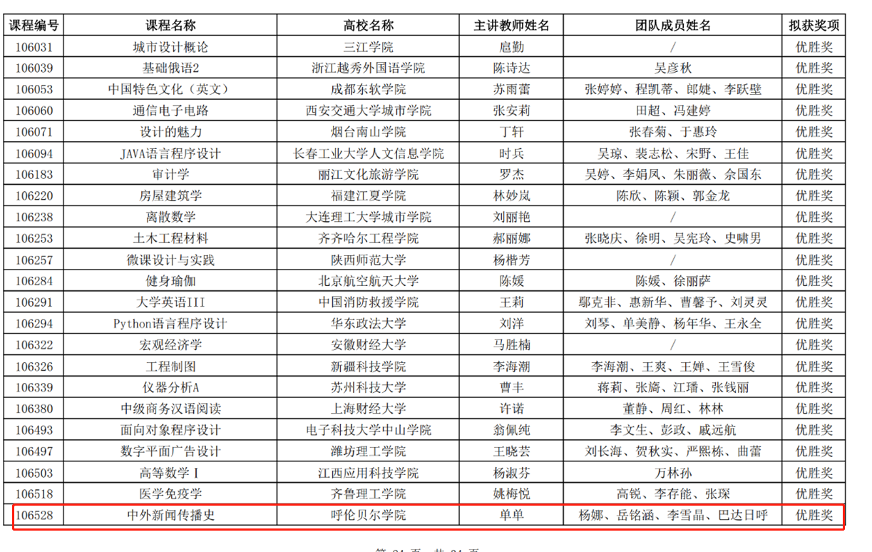本届比赛有来自全国各高校的数千余门课程通过线上参赛,竞争异常激烈。在激烈的角逐中,诸侯快讯官网《大学英语AI》韩丽伟团队凭借出色的教学设计与实践,荣获全国三等奖,充分展示了学校在英语教学改革方面的创新成果。同时,《中外新闻传播史》单单团队和《教育心理学》梁静团队也凭借各自在混合式教学中的独特见解和实践经验,荣获优胜奖,为学校赢得了荣誉。