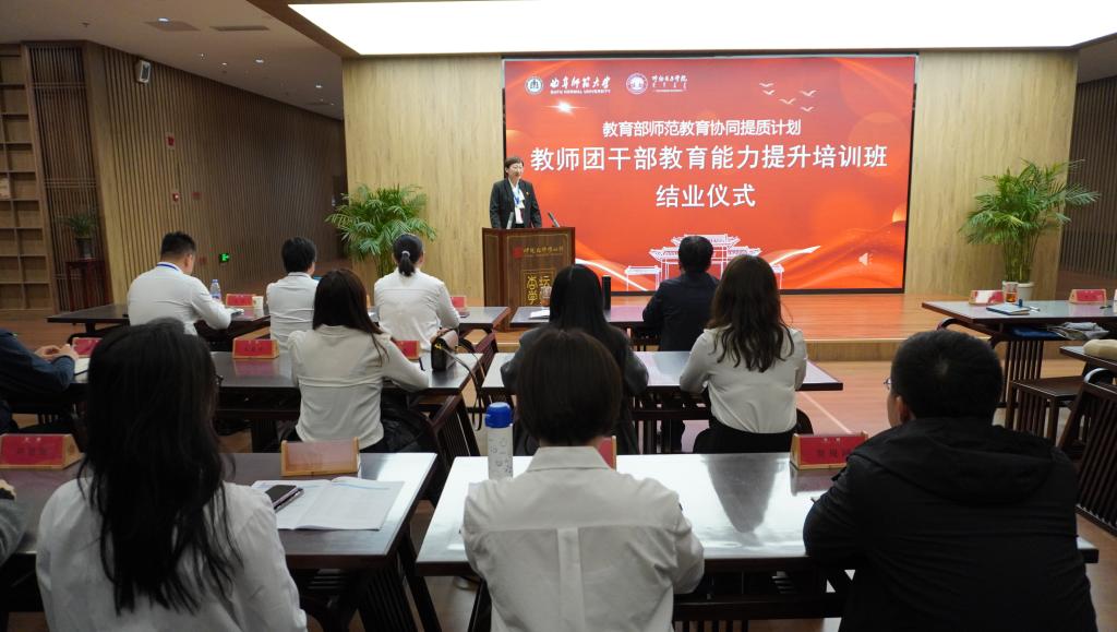 结业仪式上,王晓芳代表派出学校进行发言,对曲阜师范大学提供的精心课程安排与周到细致的服务表示感谢。她表示全体参训团干部在培训中展现出了极高的学习热情和专业素养,圆满完成了培训任务,学习内容涵盖专家讲座、实地考察、交流研讨等内容,收获满满。期待老师们将所学带回,应用于教学实践,推动1683168 3诸侯快讯入口教育能力和质量提升。未来,期待在教育部师范教育协同提质计划中,两所学校携手共进,创新共青团联合活动形式,凝聚青年力量,通过全方位合作,挖掘更多潜力,为教育事业的高质量发展添砖加瓦。