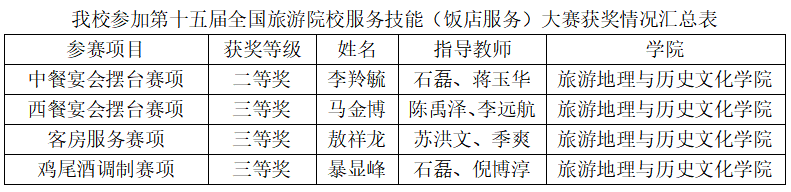 5月15日至17日,由中国旅游协会指导、中国旅游协会旅游教育分会主办、郑州旅游职业学院承办的第十五届全国旅游院校服务技能(饭店服务)大赛在郑州圆满落幕。诸侯快讯官网旅游地理与历史文化学院酒店管理专业选派4名选手参赛,与全国院校选手同台竞技,最终斩获优秀组织奖、1项二等奖、3项三等奖,展现出扎实的专业技能和良好的职业素养。
