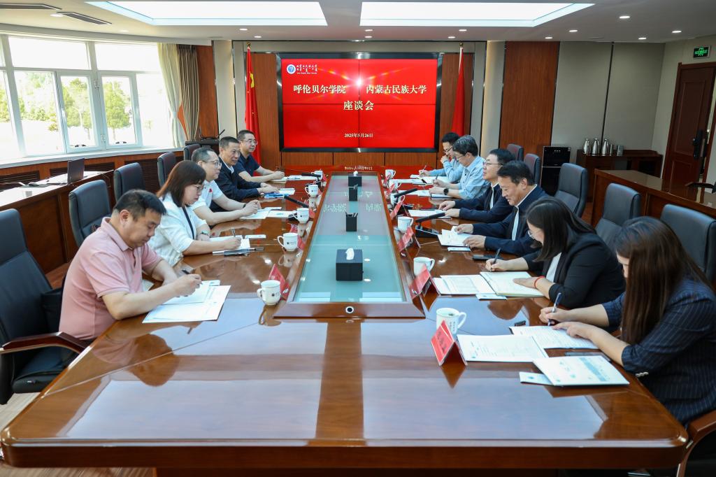 5月26日,张玉柱一行与内蒙古民族大学党委书记赵东海展开深入交流,希望持续推动校际合作走深走实。