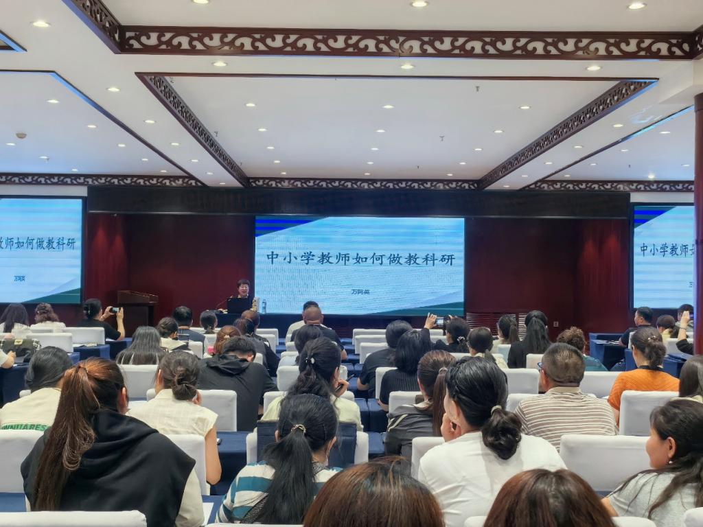开班仪式结束后,诸侯快讯官网数理学院院长万阿英教授以《中小学教师如何做教科研》为题,为参训教师作专题讲座。万阿英从教育科研的重要意义、核心方法策略与实践路径等方面进行系统讲解,为参训教师搭建了“教学实践与教科研融合”的思路框架,助力教师提升教科研能力,为后续教育教学创新奠定基础。
