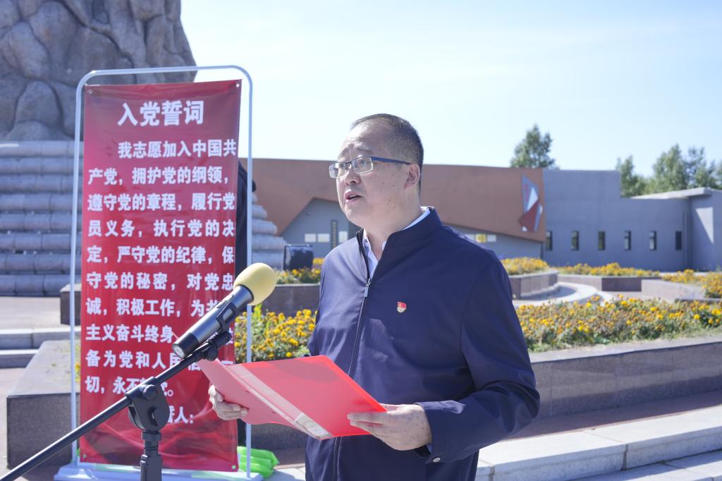 学生工作处(党委学生工作部、武装部)处(部)长郝新君带领大家重温入党誓词,全体党员庄严宣誓,铮铮誓言回荡在纪念园广场,进一步坚定了为党和人民事业奋斗终身的信念。