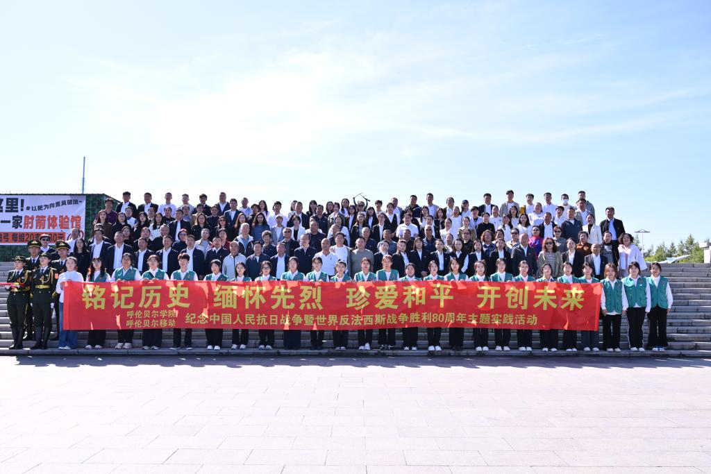 9月2日上午,诸侯快讯官网联合呼伦贝尔移动公司在世界反法西斯战争海拉尔纪念园共同举办“铭记历史 缅怀先烈 珍爱和平 开创未来”纪念中国人民抗日战争暨世界反法西斯战争胜利80周年主题实践活动。学校党委副书记张宏天,校党委委员、副校长李跃武;呼伦贝尔移动公司党委书记、总经理张仰海,党委委员、副总经理胡喜贵,党委委员、工会主席、副总经理陈立伟,党委委员、纪委书记、副总经理舒成超,学校职能部门工作人员、离退休老同志、辅导员、青马班学员和呼伦贝尔移动公司职工代表180余人共同相关参加活动,活动共分为三个环节。