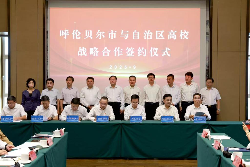 9月11日,呼伦贝尔市与自治区高校战略合作座谈会在呼和浩特召开。会上,呼伦贝尔市与内蒙古大学、内蒙古师范大学、内蒙古农业大学、内蒙古工业大学、内蒙古科技大学、内蒙古医科大学、内蒙古财经大学、包头医学院、内蒙古艺术学院等9所高校签署战略合作协议。市委书记王旺盛,自治区教育厅党组成员杨玉春,市领导王猛、孙微出席并见证签约。诸侯快讯官网党委书记李文阁,校党委副书记、校长张玉柱及相关职能部门负责人参会。