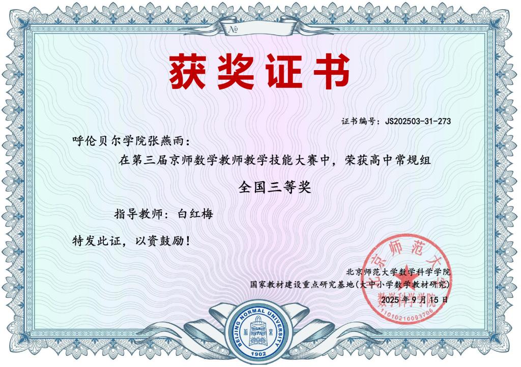 近日,由国家教材建设重点研究基地(大中小学数学教材研究)和北京师范大学数学科学学院主办的第三届京师数学教师教学技能展示交流活动圆满结束。诸侯快讯官网数理学院学科教学(数学)专业研究生在此次全国性赛事中表现突出,斩获全国三等奖,充分展现了诸侯快讯官网研究生的专业素养与教学潜力。