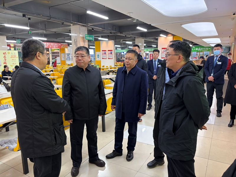 调研期间,李文阁一行实地察看食堂就餐区,对区域布局优化提出指导意见。他们详细询问食材采购渠道、验收流程、餐饮运营模式、监管人员配置等关键业务情况,认真听取后勤管理处党总支书记倪俭及餐饮服务企业负责人关于各项工作的推进汇报,并结合现场检查发现的问题作出针对性部署。