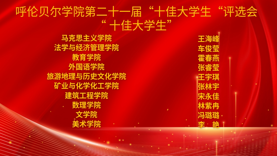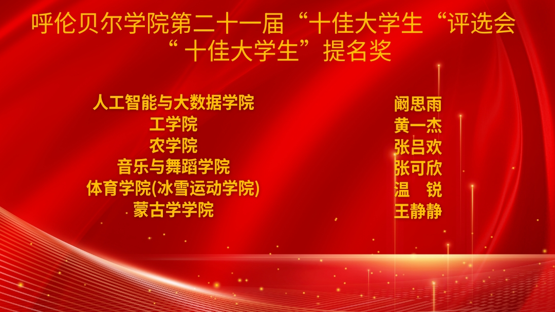 薪火相传,榜样启航。团委将继续深挖“十佳大学生”榜样示范作用,引领呼院学子立大志、明大德、成大才、担大任,在求知中锤炼本领,在实践中勇担使命,为中国式现代化建设注入青春动能。