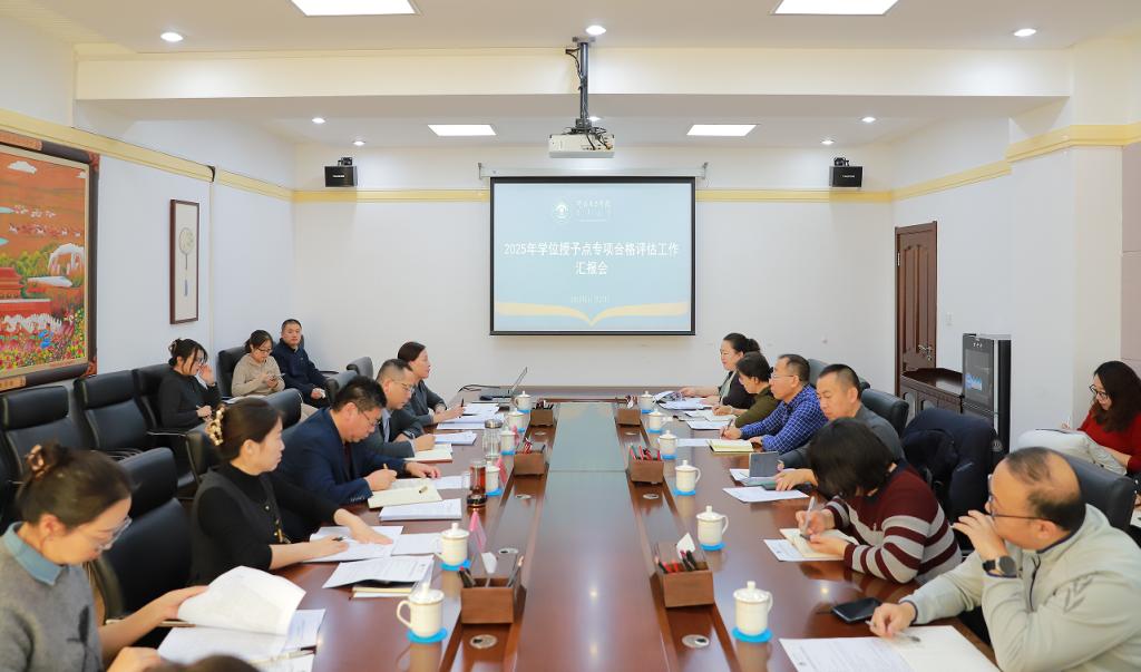 会上,研究生处负责人汇报了学校2025年学位授予点专项合格评估工作进展情况;教育和旅游管理两个学位点牵头学院负责人依次就专项合格评估工作完成情况进行了汇报。