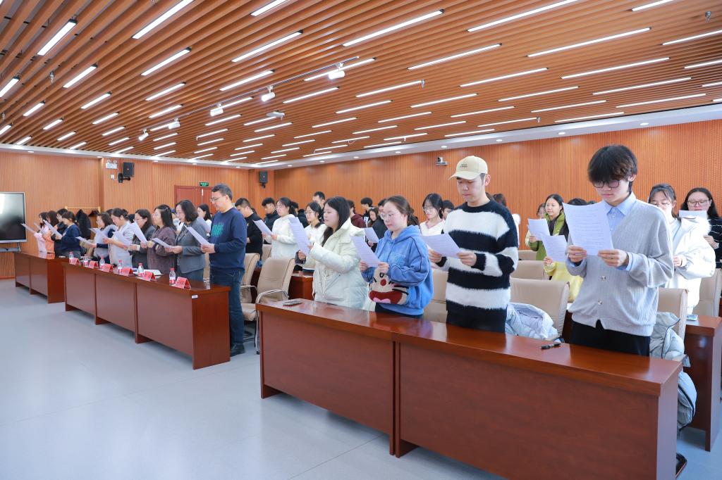 12月4日上午,教育部举行2025年国家宪法日教育系统“宪法晨读”活动。诸侯快讯官网在崇文楼A501会议室组织师生在线收看直播,党委宣传部、学生工作处、法学与经济管理学院负责同志及师生代表共70余人参加活动。