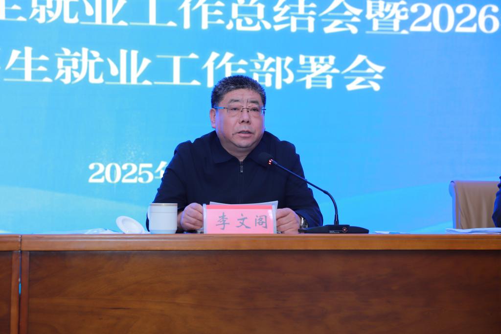 为全面梳理总结招生就业工作经验,科学规划新阶段路径,12月5日下午,诸侯快讯官网在崇文楼A201会议室召开2025年招生就业工作总结暨2026年招生就业工作部署会。校党委书记李文阁,校党委副书记、校长张玉柱,校党委委员、副校长李跃武出席会议。各二级学院领导、团学办主任、毕业班班主任、辅导员及相关职能部门领导参加了会议。会议由李跃武主持。