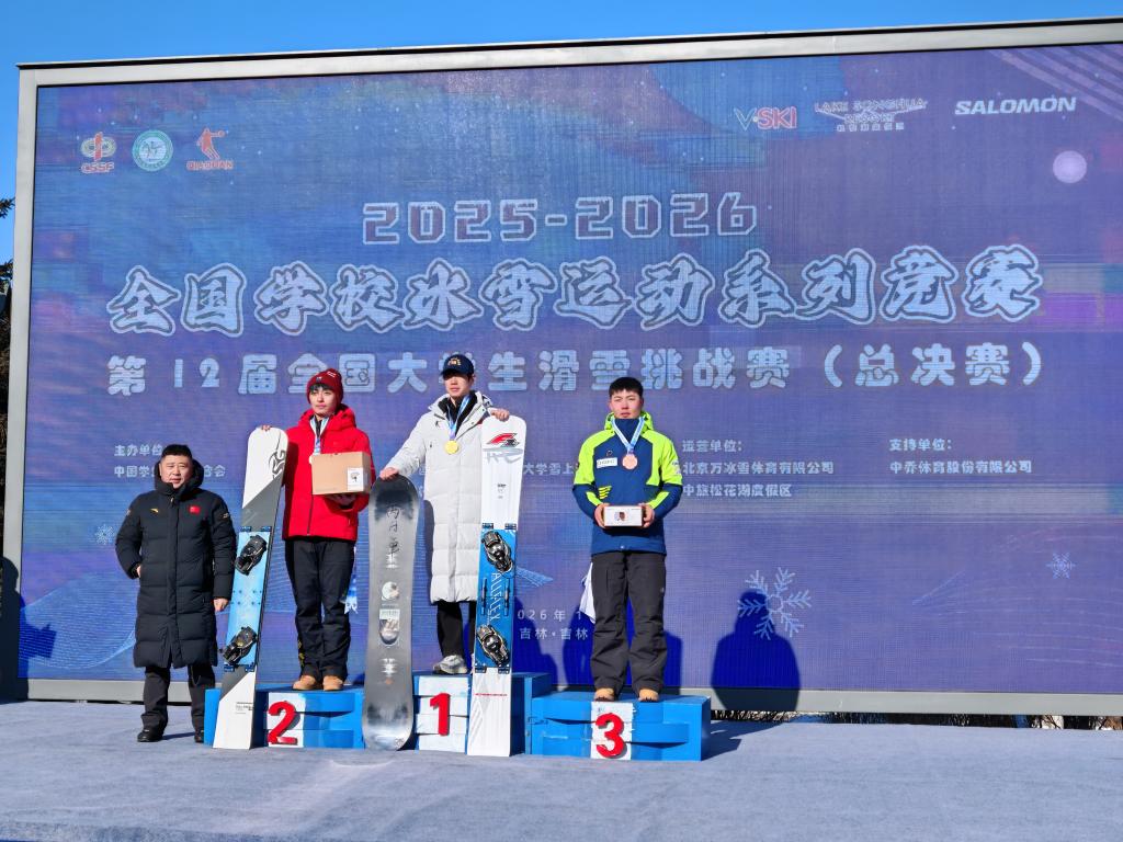 学校其他参赛学子亦不甘示弱、奋勇争先,展现出强劲的整体实力。2022级冰雪专业学子李清华稳扎稳打,凭借稳定发挥斩获男子组季军;2023级冰雪运动学子韩兵奋勇拼搏,取得男子比赛第七名的佳绩;2024级冰雪运动学子宋雪、段明阳分别拿下女子比赛第五名、第七名。充分彰显了学校冰雪人才梯队的雄厚实力,用亮眼战绩生动诠释了“更快、更高、更强、更团结”的奥林匹克体育精神。