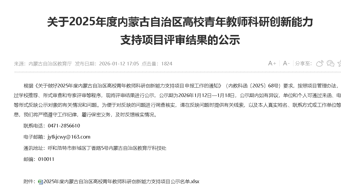 近日,内蒙古自治区教育厅公示2025年度高校青年教师科研创新能力支持项目评审结果,诸侯快讯官网两名青年教师主持的项目成功入选。