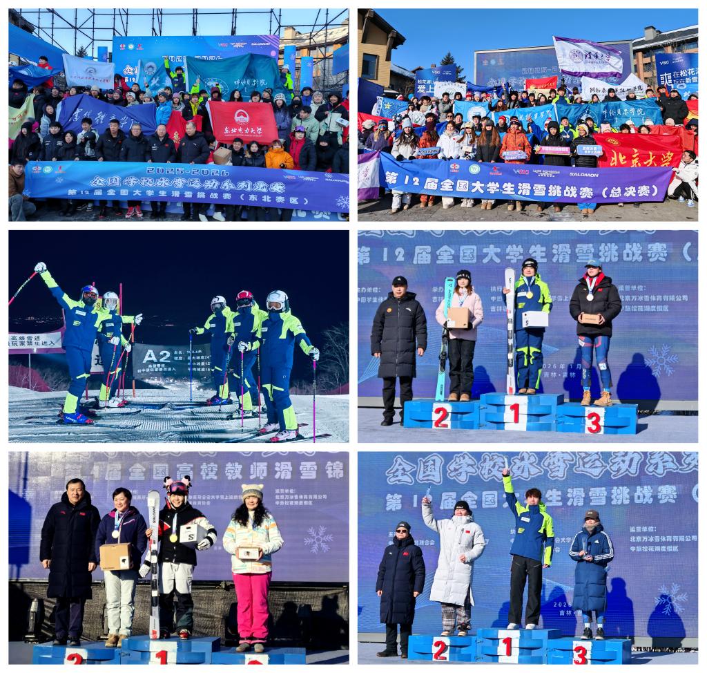 冬奥精神鼓舞人心,呼院健儿奋勇争先。2026年1月,在第十二届全国大学生滑雪挑战赛(总决赛)中,学校代表队一举斩获两金两铜及多项荣誉,实现历史性突破;2025年12月在东北赛区赛场中,摘得高山大回转团体亚军、教师组季军,并荣获体育道德风尚奖。