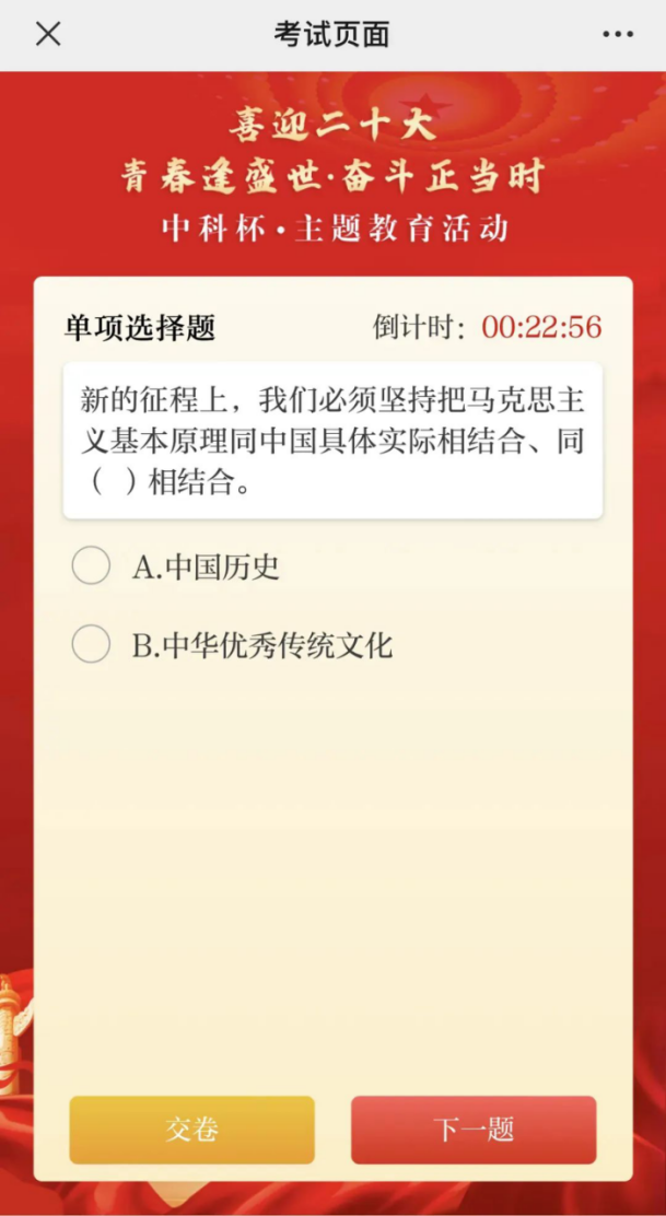 4.答题时限是25分钟,进入答题页面则系统自动开始倒计时。参赛者作答完毕可以随时提前交卷;为防作弊,答题中途退出时,倒计时将继续计时;25分钟倒计时结束后,系统将自动交卷。