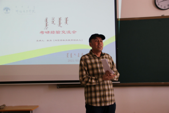 3月13日,蒙古学学院在崇文楼B404召开了2018级学生考研动员会。会议特别邀请了内蒙古敖敦教育创办人敖敦老师。
