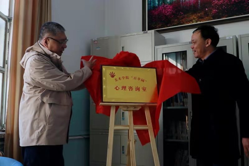 为宣传和普及心理健康知识,缓解日益增多的心理问题,3月12日,美术学院“百草园”心理咨询室正式揭牌并启动。学生工作处处长李健、副处长王晓芳、思想政治教育科科长谢春辉,美术学院党总支书记包德、副书记张巍巍和团学办公室成员、学生代表参加了此次揭牌仪式。