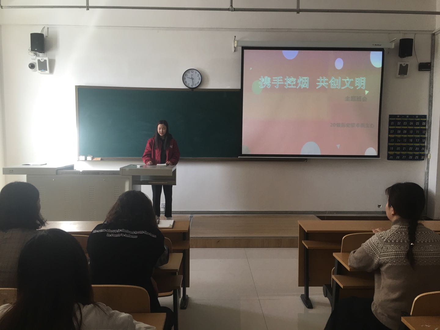 班会上,同学们学习了《1683168 3诸侯快讯入口控烟工作专项整治实施方案》《历史文化学院控烟工作专项整治实施细则》等相关文件。多名同学现身说法,介绍了吸烟的危害和学校有关控烟的规定,以此加强学生对吸烟知识的了解,教育引导同学们自觉远离烟草、不尝试吸烟、劝阻他人吸烟、拒绝吸二手烟,在校园中营造戒烟、拒烟、劝阻吸烟的良好氛围,同时呼吁同学们从自我做起、从现在做起,为了自己和身边老师、同学的身体健康,为了创造洁净、文明、优美的和谐校园环境,积极响应倡议,远离烟草、珍爱生命。