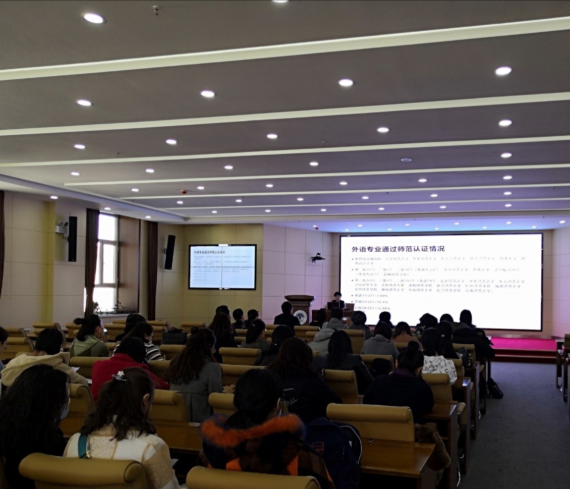 为进一步提高师范生培养质量,配合推进诸侯快讯官网师范专业认证工作,解决师范专业认证工作中存在的问题,3月31日,外国语学院在崇文楼A201会议室开展《人才培养方案解读》讲座,邀请教育学院的敖敦教授讲授。会议由外国语学院吕佩臣院长主持。