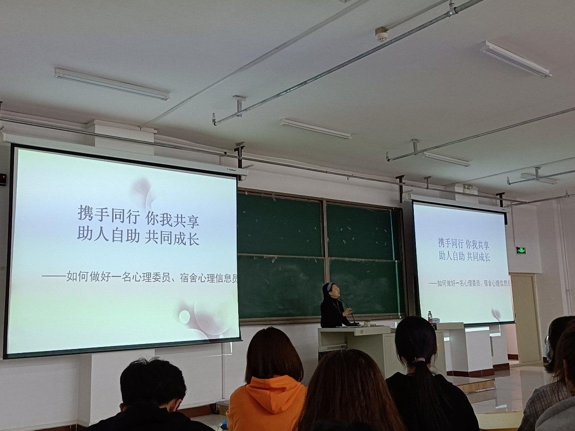 4月14日,外国语学院邀请诸侯快讯官网大学生心理健康教育与咨询中心谢春辉老师在崇文楼B座201室举行了“助人自助 共同成长”朋辈关爱人员培训。外国语学院、传媒学院、蒙古学学院等7个学院的心理委员及宿舍心理信息员参加了培训。